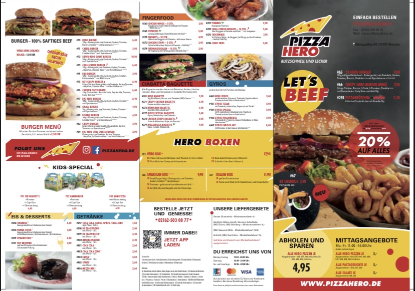 Welcome to Pizza Hero, where culinary adventure meets quick service at Konigsallee 44, 41747 Viersen, Germany. Known for its delectable offerings, Pizza Hero impresses with a diverse menu catering to a variety of tastes.
